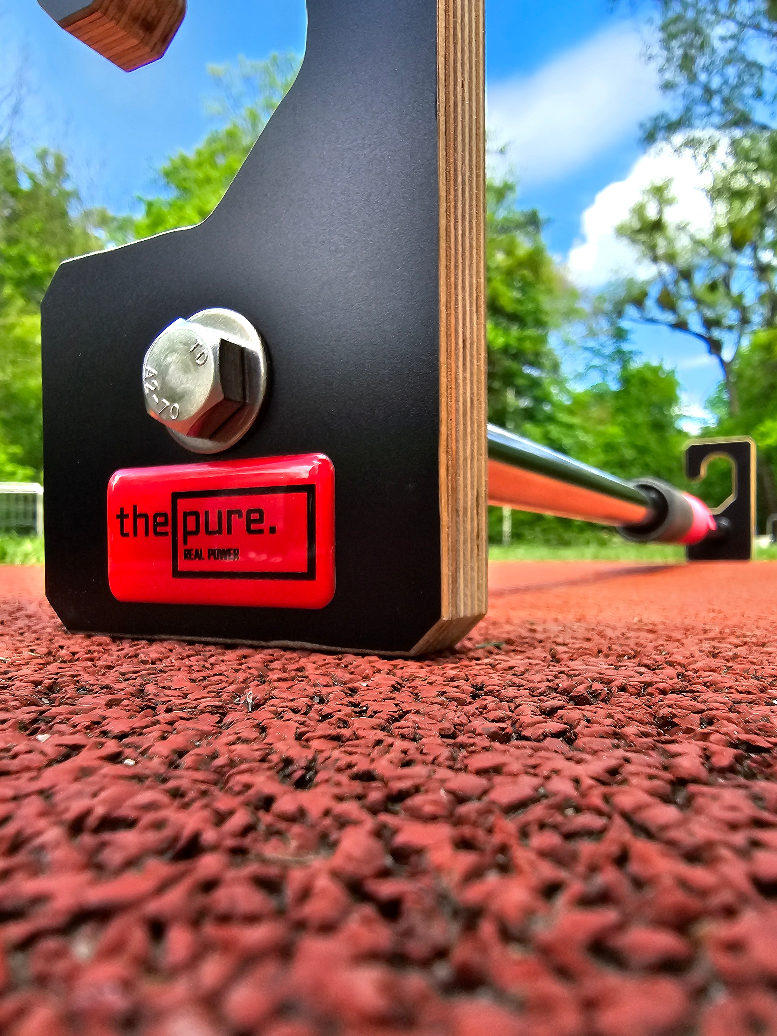 Richtig, mit den innovativen Liegestützgriffen von the pure. Kurz erklärt: das ist die Abkürzung für push-up-revolution, weil es den Liegestütz wirklich revolutioniert. Bei der Vorwärtsbewegung der Arme werden diese auf natürliche Weise zusammengeführt. Bei den klassischen Liegestützen bleiben die Hände aber statisch auf dem Boden und Gelenke, Sehnen und Bänder werden unnatürlich gestreckt und belastet. Deshalb habe ich bei der Entwicklung darauf geachtet diesen Missstand zu beheben, so dass mit the pure. ein Trainingsgerät entstand das die: